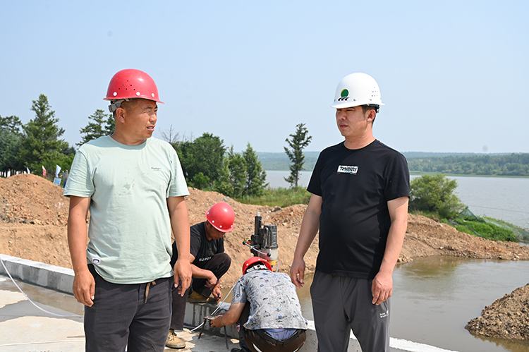 在引龍河農(nóng)場(chǎng)有限公司青年水庫(kù)除險(xiǎn)加固工程施工現(xiàn)場(chǎng),機(jī)器轟鳴,施工現(xiàn)場(chǎng)對(duì)大壩固腳及安全圍欄施工作業(yè),增強(qiáng)壩基防滲能力,消除大壩防洪隱患。同時(shí)與施工、設(shè)計(jì)部門一同研究,采用增設(shè)防滲膜圍堰措施,加快施工進(jìn)度,制定了趕工計(jì)劃,倒排工期,確保汛限水位以下部分在主汛期來(lái)臨前全部完成。此外,現(xiàn)場(chǎng)還有督導(dǎo)組對(duì)水庫(kù)除險(xiǎn)加固工程進(jìn)行檢查。