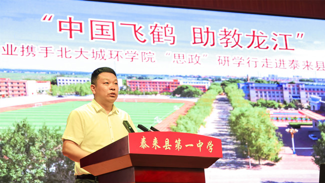 北京大學(xué)城環(huán)學(xué)院學(xué)工辦副主任杜宇在母校泰來一中做演講