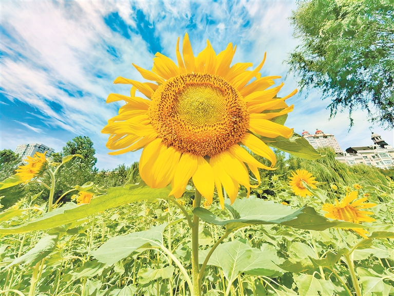 8月14日,哈爾濱市兒童公園內(nèi),美麗的向日葵花迎著陽(yáng)光陸續(xù)綻放。