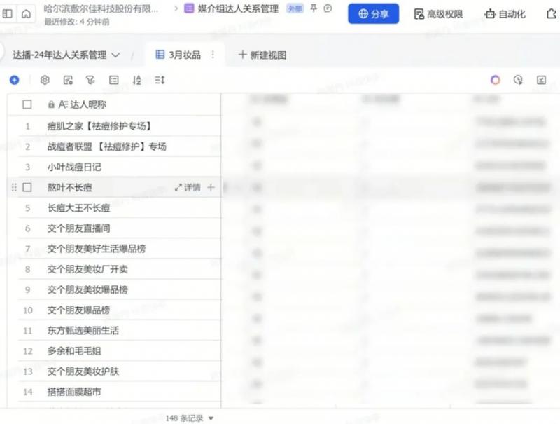 由于器械字號產(chǎn)品的特殊性,現(xiàn)在敷爾佳通過飛書在線文檔審批達(dá)人,將達(dá)人數(shù)據(jù)填寫上報,上級在線同步審批達(dá)人,跟進(jìn)確定合作。直播中,用飛書云盤儲存資料,將達(dá)播錄屏,產(chǎn)品資料等數(shù)據(jù),同步云盤,方便各部門查看,調(diào)取相關(guān)資料。直播后,利用飛書多維表格將達(dá)人信息,合作傭金,產(chǎn)出 GMV,對接人等重要信息歸攏一起,形成多維表格方便組織內(nèi)互相查閱填寫, 通過儀表盤的功能體現(xiàn)出哪些達(dá)人是優(yōu)質(zhì)合作達(dá)人,并為二次投放合作提供了參考價值。