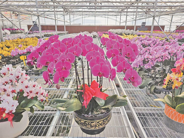 哈爾濱市道里區(qū)榆樹鎮(zhèn)新鄉(xiāng)村的現(xiàn)代化花卉溫室大棚內(nèi),上百種色彩艷麗的蝴蝶蘭花含苞待放,它們將在12月底陸續(xù)上市,裝點市民的生活。哈爾濱花間集農(nóng)業(yè)科技有限公司負責人劉鵬說,這里采用新型雙層膜充氣聯(lián)動溫室培育種植蝴蝶蘭等花卉苗木。采取“公司+基地+農(nóng)戶”的合作模式,蝴蝶蘭年產(chǎn)量可達30萬至40萬株,2023年全年實現(xiàn)毛利潤400萬至500萬元。