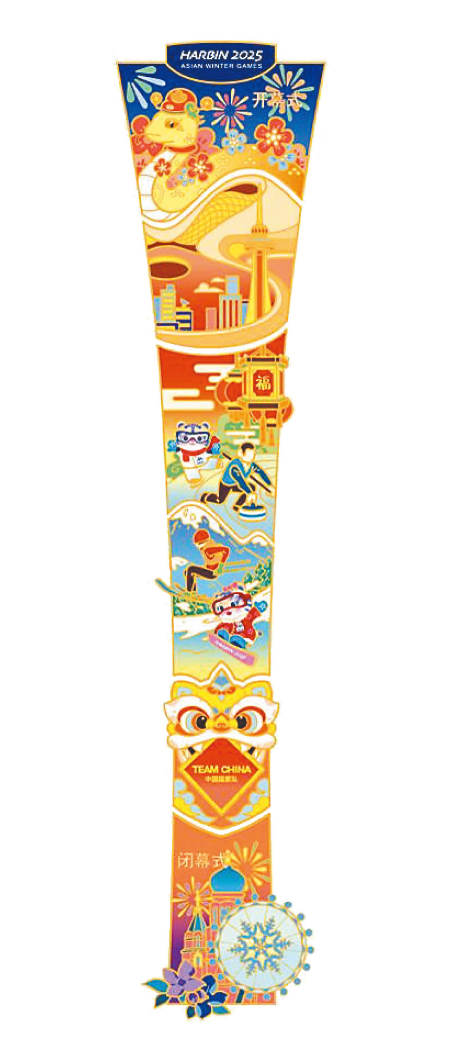 工作人員介紹,目前銷售最火爆的就是形似火炬的徽章,它是中國(guó)國(guó)家隊(duì)聯(lián)名徽章胸針套裝,設(shè)計(jì)靈感源自亞冬會(huì)火炬的輪廓,套裝內(nèi)包含六段精致的徽章,通過(guò)巧妙的拼接,呈現(xiàn)出亞冬會(huì)盛況。