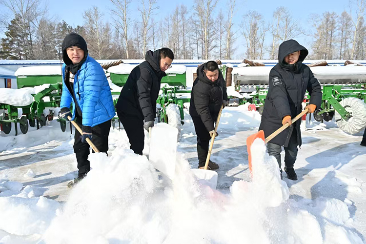 “眼下天氣逐漸回暖,為了避免氣溫上升造成積雪融化而形成冰層,影響后續(xù)工作,我們采取鏟車清雪、人工清邊的措施,確保將農(nóng)具場(chǎng)積雪徹底清理干凈,為農(nóng)機(jī)具檢修提供良好環(huán)境?!惫芾韰^(qū)工作人員說。