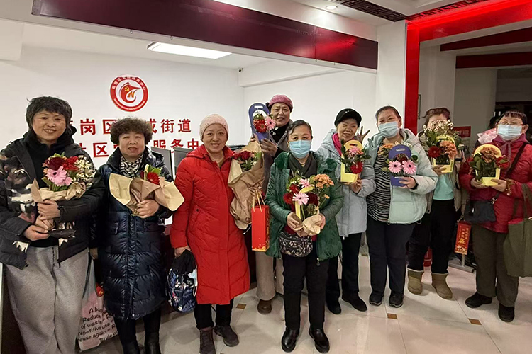 哈市南崗區(qū)大成街道新吉社區(qū)開展“情暖三月·花漾巾幗”主題插花活動(dòng)