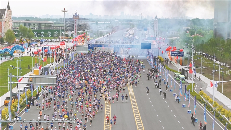 隨著發(fā)令槍響,選手們?nèi)珉x弦之箭般沖出起跑線,他們身著各式運(yùn)動(dòng)服,與樂安新區(qū)的生態(tài)賽道交相呼應(yīng),形成了一道亮麗的風(fēng)景線。
