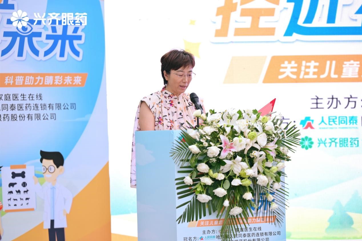 哈爾濱人民同泰醫(yī)藥連鎖有限公司副總經(jīng)理柴靜榮在致辭中直面近視低齡化、重度化挑戰(zhàn),強(qiáng)調(diào)企業(yè)踐行“打造卓越品牌、致力大眾健康”使命的責(zé)任擔(dān)當(dāng)。依托全省350余家社區(qū)門店網(wǎng)絡(luò)及線上線下一體化平臺(tái),全力支持公益視力檢測、科普講座等行動(dòng),并發(fā)揮執(zhí)業(yè)藥師團(tuán)隊(duì)專業(yè)力量,使科學(xué)近視防控理念精準(zhǔn)觸達(dá)家庭場景。