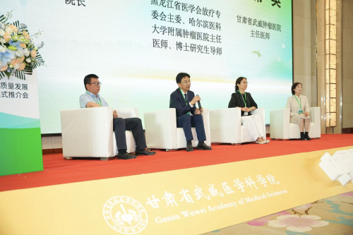 黑龍江省醫(yī)學(xué)會(huì)放療專(zhuān)委會(huì)主委、哈爾濱醫(yī)科大學(xué)附屬腫瘤醫(yī)院主任醫(yī)師、博士研究生導(dǎo)師張?jiān)破G教授,哈爾濱醫(yī)科大學(xué)附屬腫瘤醫(yī)院胸部放療二科主任醫(yī)師、博士研究生導(dǎo)師王春波教授,北大荒集團(tuán)總醫(yī)院腫瘤內(nèi)三科主任醫(yī)師高峰教授,哈爾濱醫(yī)科大學(xué)附屬腫瘤醫(yī)院研究員、博士研究生導(dǎo)師白彥靈教授,黑龍江省醫(yī)院放療科主任、碩士研究生導(dǎo)師張春東教授,哈爾濱醫(yī)科大學(xué)附屬第二醫(yī)院放療科主任醫(yī)師、碩士研究生導(dǎo)師王景璐教授;中國(guó)南航集團(tuán)文化傳媒股份有限公司領(lǐng)導(dǎo)層經(jīng)營(yíng)班子成員董衛(wèi)軍,中國(guó)人壽“百萬(wàn)醫(yī)療+重離子就醫(yī)綠色生命通道”項(xiàng)目負(fù)責(zé)人蔣偉,以及甘肅省武威腫瘤醫(yī)院院長(zhǎng)葉延程及相關(guān)工作負(fù)責(zé)人參加本次會(huì)議。