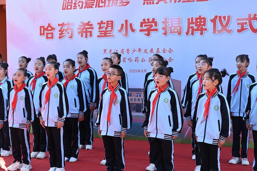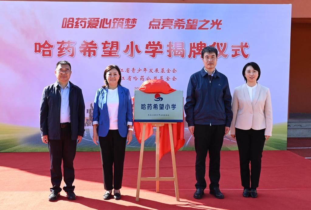 隨后,領導嘉賓為哈爾濱市香坊區(qū)幸福鎮(zhèn)哈藥希望小學揭牌,標志著這所學校將以嶄新面貌,承載更多夢想與希望,開啟新的篇章。
