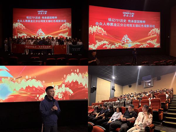為深切緬懷革命先輩,大力弘揚愛國主義精神,進(jìn)一步增強全體人員的歷史責(zé)任感與崗位擔(dān)當(dāng)意識,合眾人壽黑龍江分公司黨支部組織開展“銘記731歷史,傳承愛國精神”紅色觀影活動。在黨支部書記的帶領(lǐng)下,分公司黨員、入黨積極分子、內(nèi)勤全體員工及個險/銀保/收展渠道外勤黨員共同參與,通過觀看歷史題材影片《731》,重溫那段刻骨銘心的歷史。