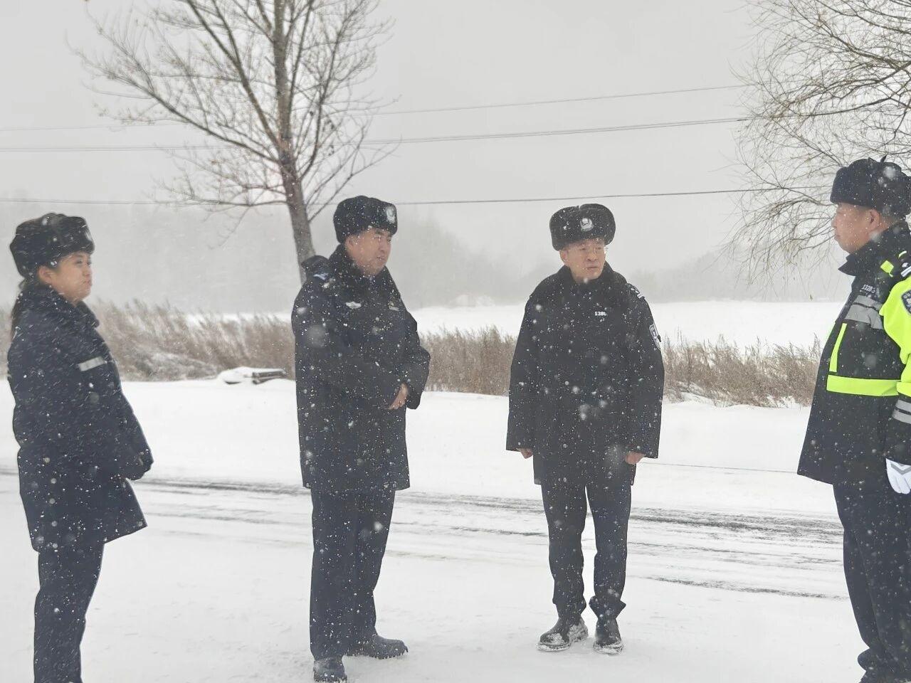 黑龍江經(jīng)濟(jì)網(wǎng)訊(李寶 記者梁新立)12月19日,五大連池市遭遇強(qiáng)降雪天氣。為筑牢道路安全防線,保障極端惡劣天氣下道路交通平穩(wěn)有序,五大連池市公安局政委王秀東深入一線實地督導(dǎo)強(qiáng)降雪天氣道路交通安全管理工作,副局長李繼偉及相關(guān)負(fù)責(zé)同志陪同。