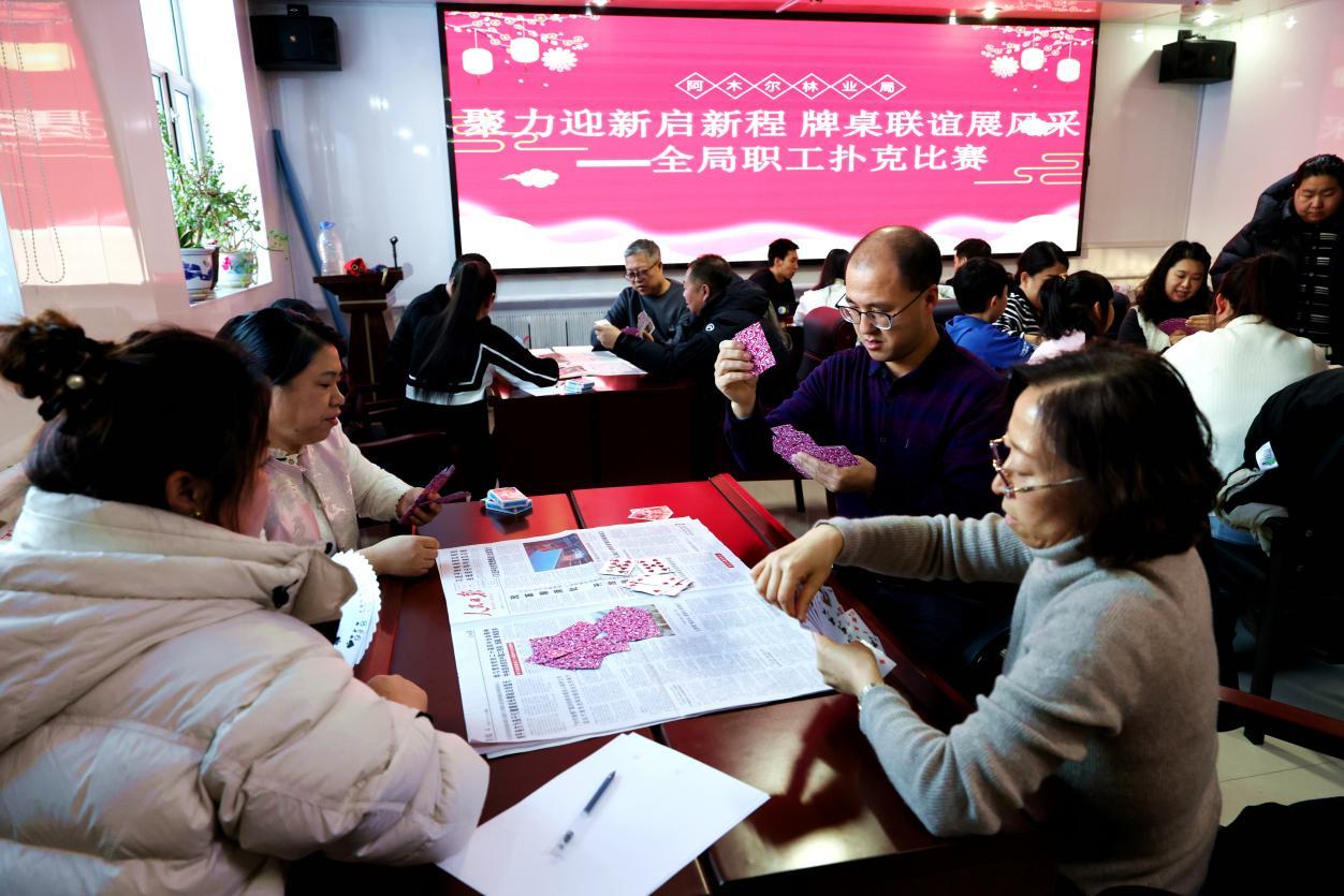 黑龍江經(jīng)濟(jì)網(wǎng)訊(王力)歡聲笑語辭舊歲,凝心聚力迎新春。為豐富全局職工精神文化生活,營造歡樂祥和的節(jié)日氛圍,近日,阿木爾林業(yè)局工會(huì)以“聚力迎新啟新程,牌桌聯(lián)誼展風(fēng)采”為主題,精心舉辦了職工撲克比賽,來自局機(jī)關(guān)各部門、各基層單位的34支代表隊(duì)近70名職工齊聚一堂,以牌會(huì)友、切磋技藝,在輕松愉悅的氛圍中喜迎新春佳節(jié)的到來。