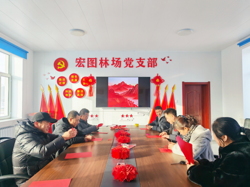 宏圖林場(chǎng)職工正在剪紙(李婷 攝)