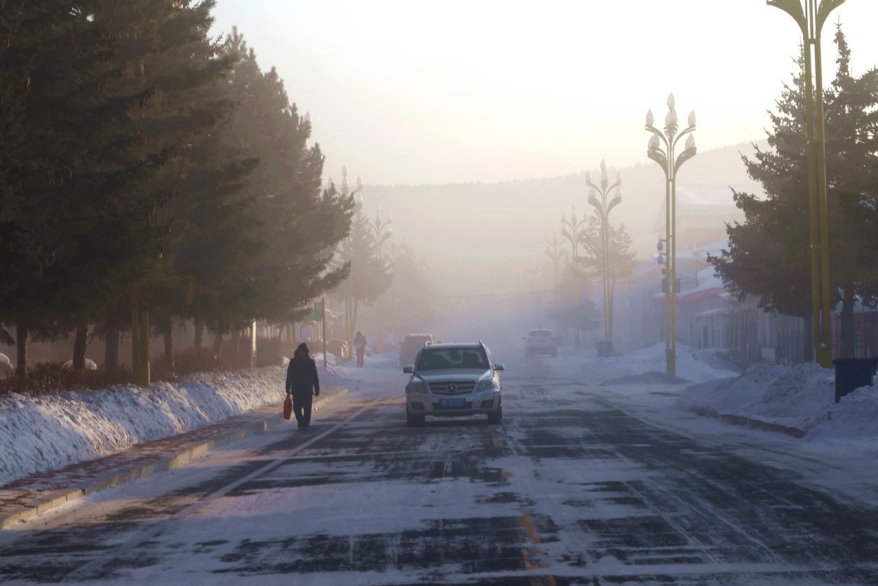 時至上午9時,依舊寒氣逼人。遠(yuǎn)山、河流被白霧籠罩,若隱若現(xiàn),銀裝素裹宛如冰雪仙境。戶外寒風(fēng)刺骨,行人出門便感到如針扎般的刺痛,呵氣成霜、滴水成冰。