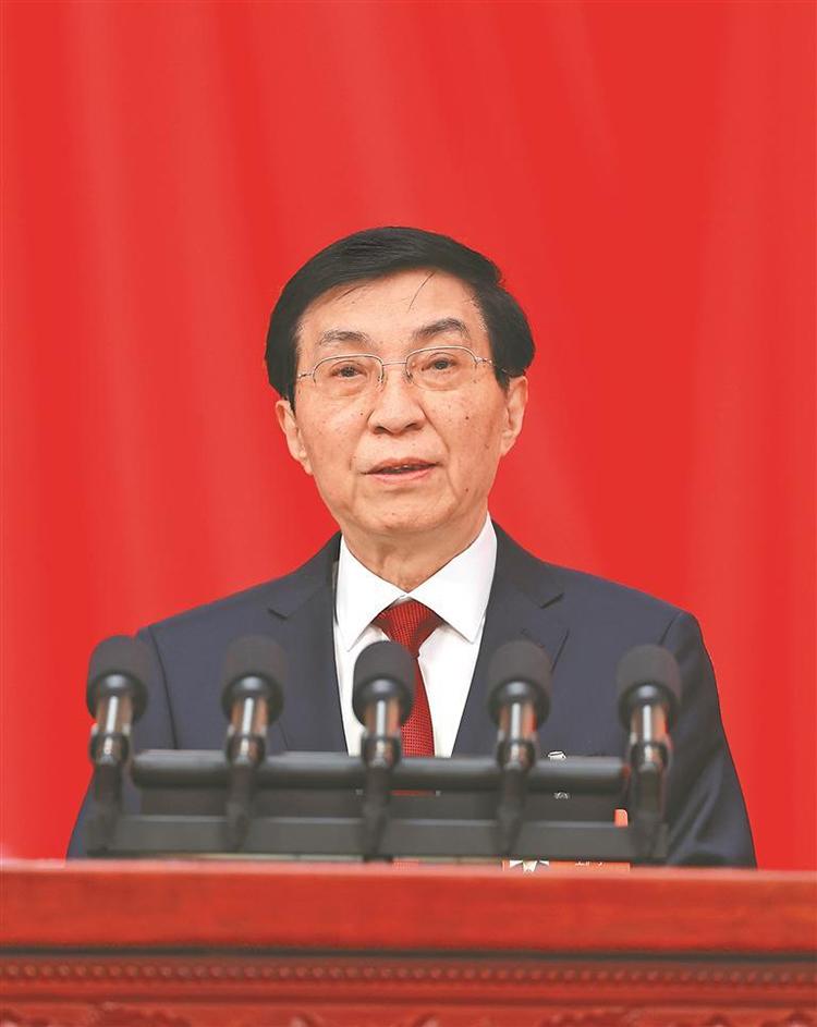王滬寧代表政協(xié)第十四屆全國(guó)委員會(huì)常務(wù)委員會(huì),向大會(huì)報(bào)告工作。