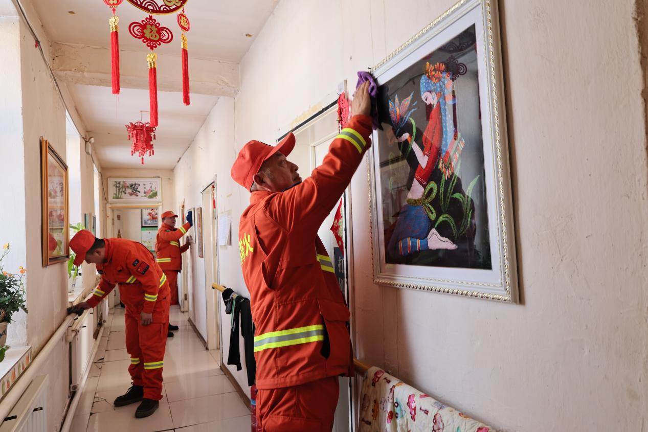 室外干勁十足,室內(nèi)溫情融融。志愿者們有的與老人促膝長(zhǎng)談、嘮起家常,詳細(xì)詢問身體狀況和生活需求;有的拿起掃帚、抹布,細(xì)致清掃地面、擦拭門窗,把房間收拾得整潔明亮,用貼心服務(wù)溫暖老人心田。